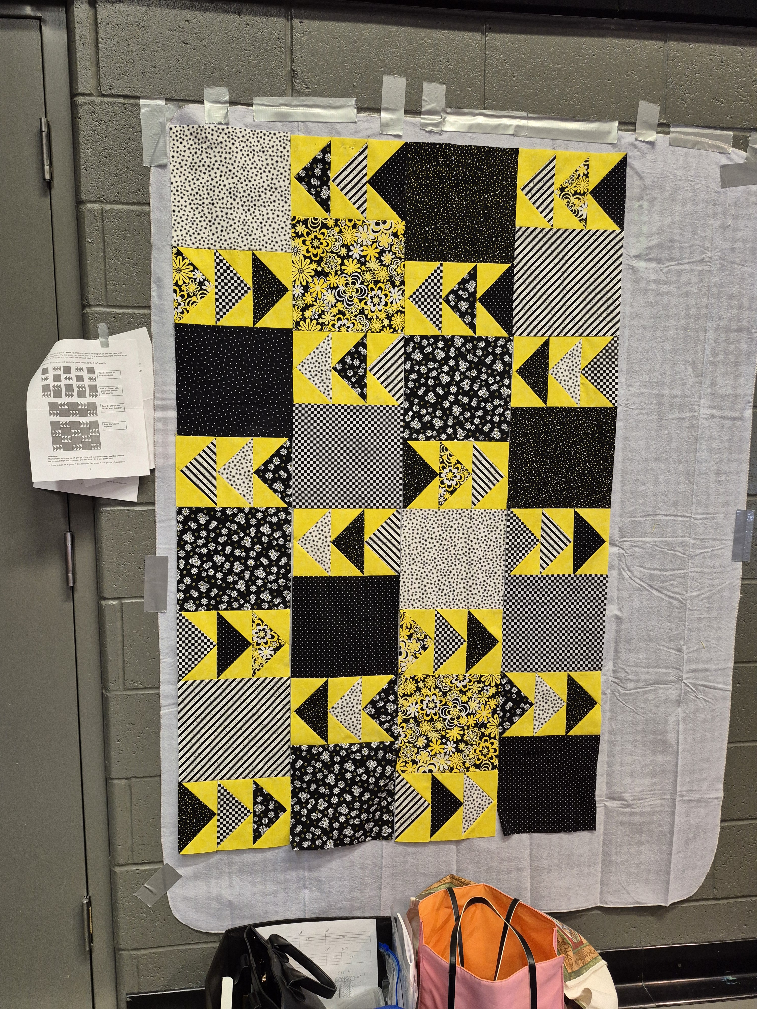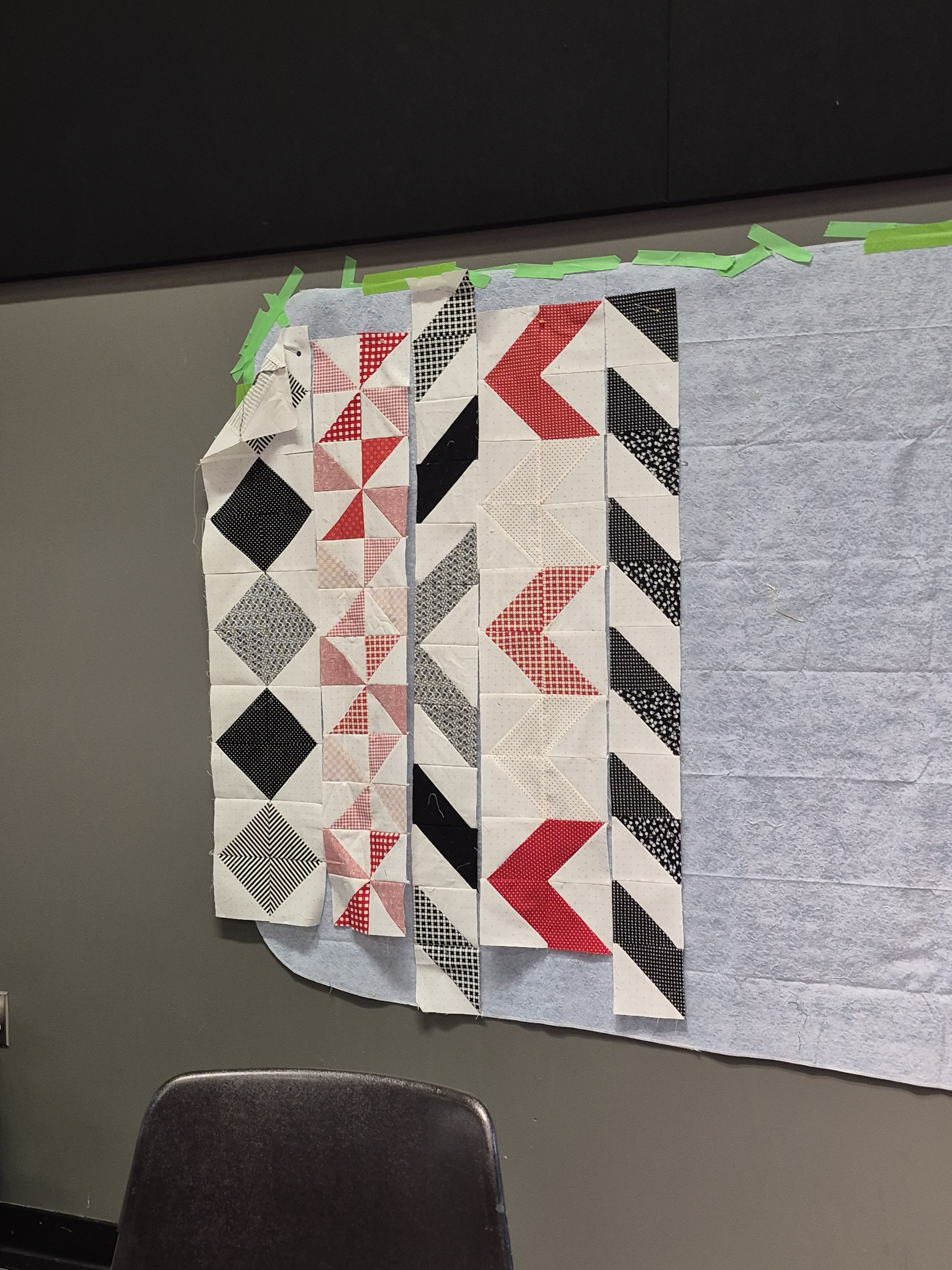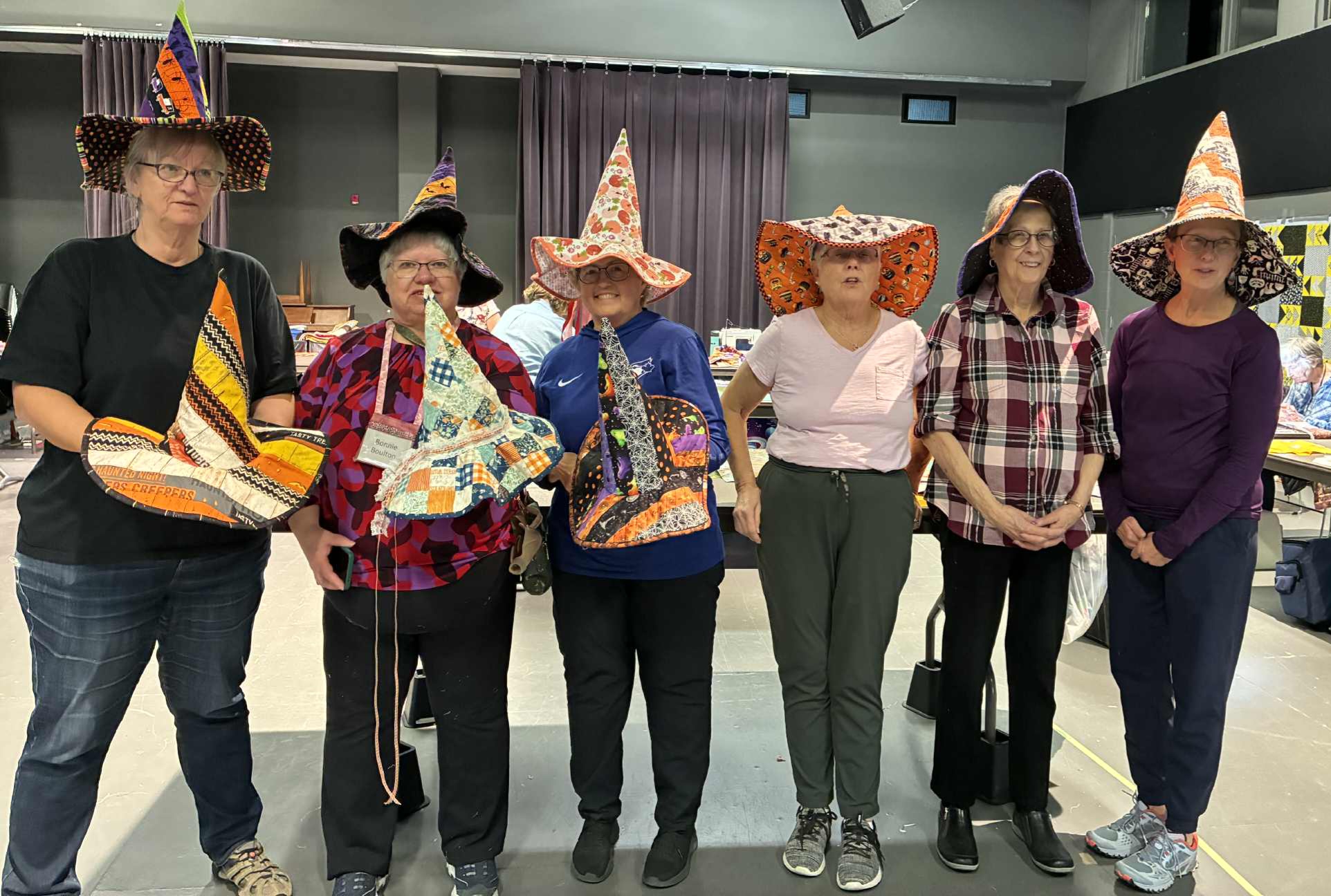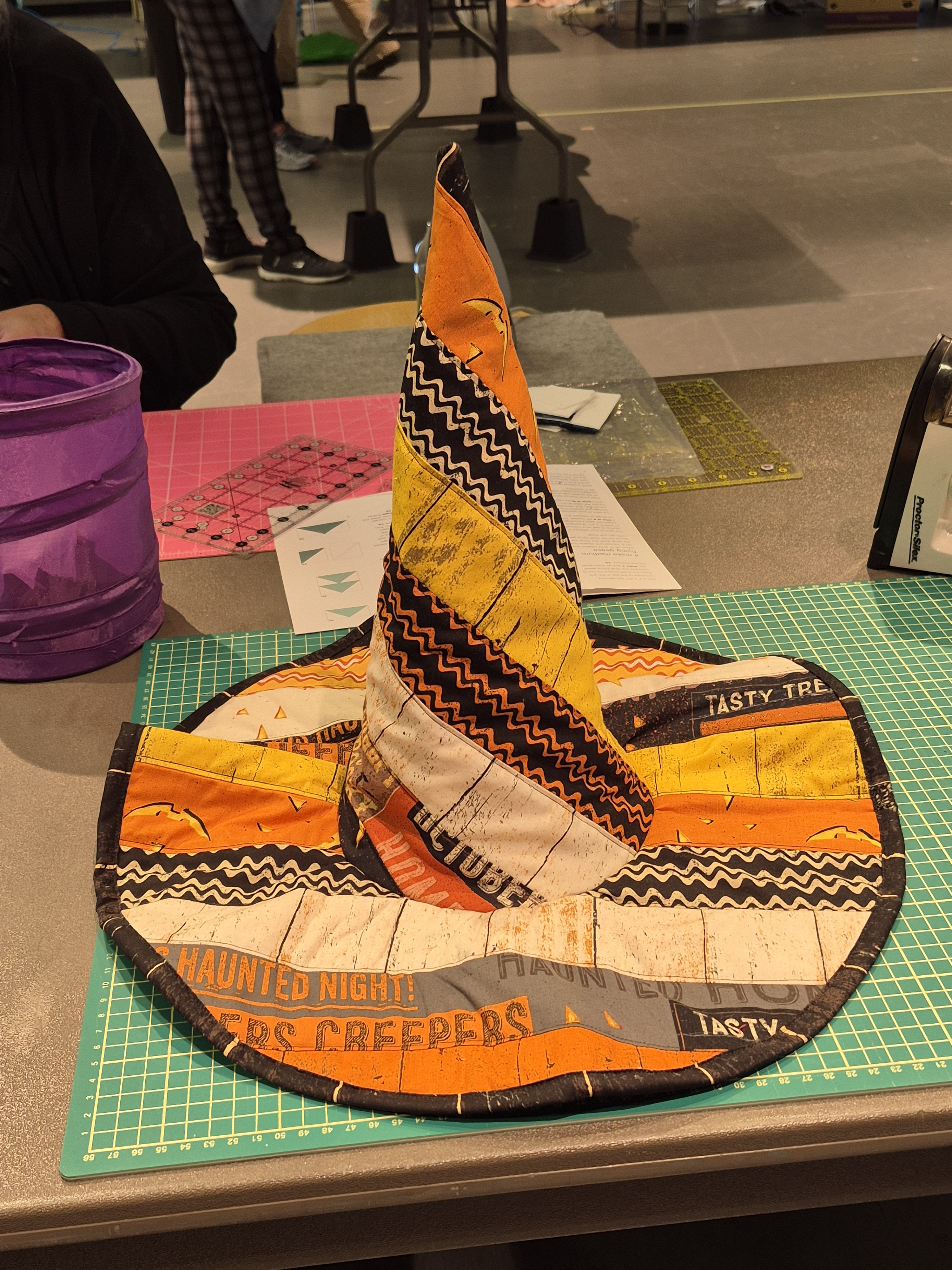 October Weekend Retreat A fun stay-at-home weekend retreat held at CASA Weekend workshop fun: Closeup of one of them witch hats: The community quilt made by all participants on the weekend: A few quilts in the planning: Getting ‘er done: